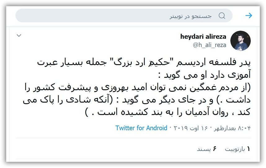 روان آدم های شاد ، از بیماری و نابودی ، بدور است. فیلسوف حکیم ارد بزرگ خراسانی