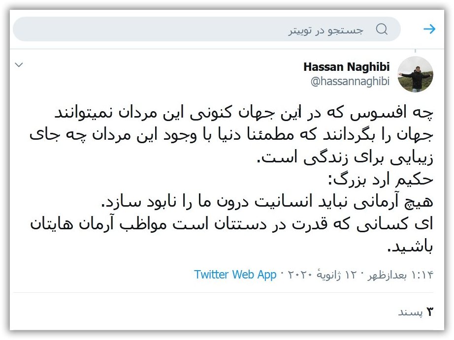 سرزمین روان ما ، میدان کینه توزی و دشمنی های بیهوده نیست. فیلسوف حکیم ارد بزرگ خراسانی